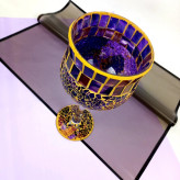 کاردست خارجی بسیار زیبا با بدنه اصلی بلور ی و روی بلور با متریال خاص تکه های شیشه رنگی و مواد رزینی تزیین شده که باعث استحکام و نمای خاص و جلوه فوق العاده منحصر بفرد این محصول گردیده است .