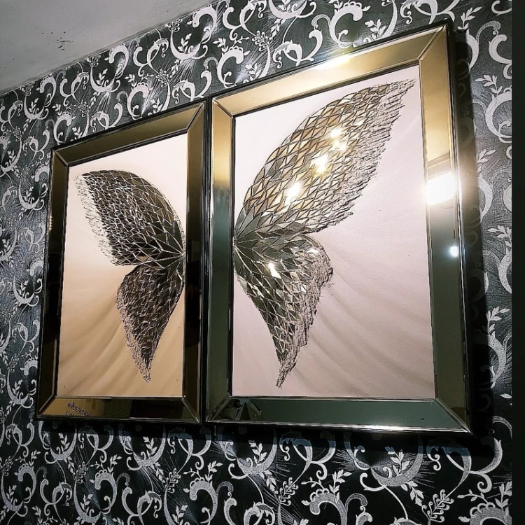 تابلو آینه ای طلایی پروانه دو تیکه کاردست شرکتی - تابلو آینه ای بزرگ پروانه - تابلو آینه ای دکوراتیو کدs653عالیجناب