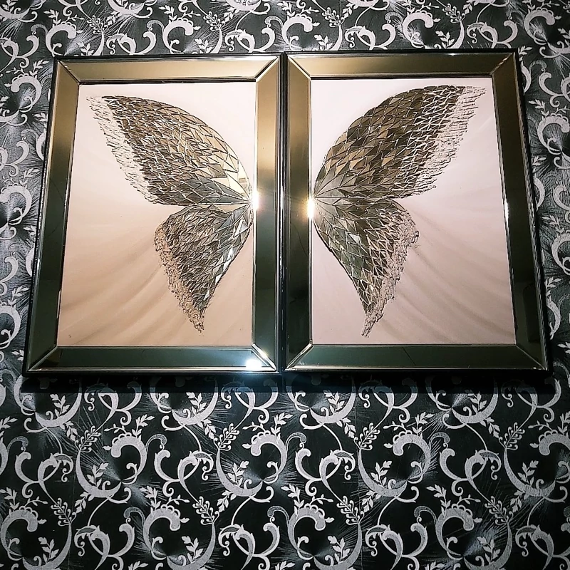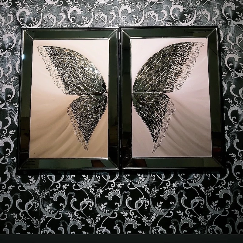 تابلو آینه ای طلایی پروانه دو تیکه کاردست شرکتی - تابلو آینه ای بزرگ پروانه - تابلو آینه ای دکوراتیو کدs653عالیجناب