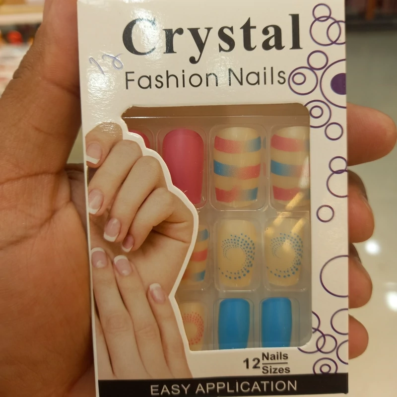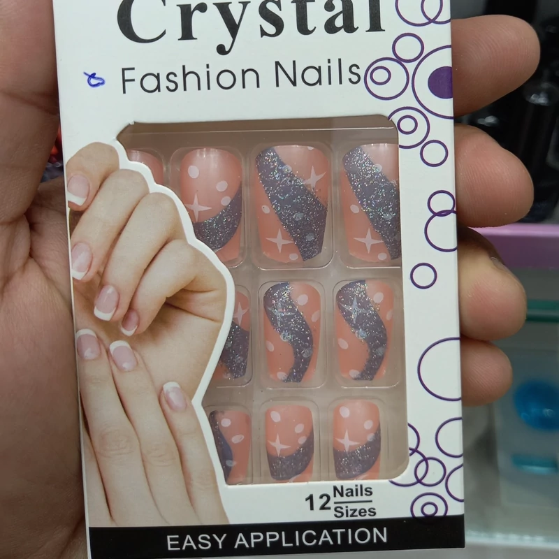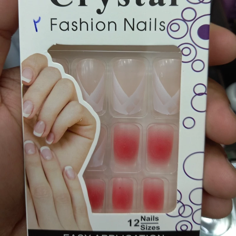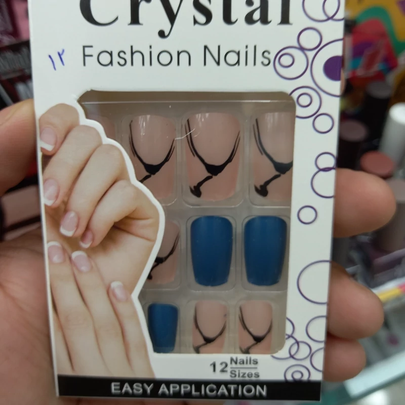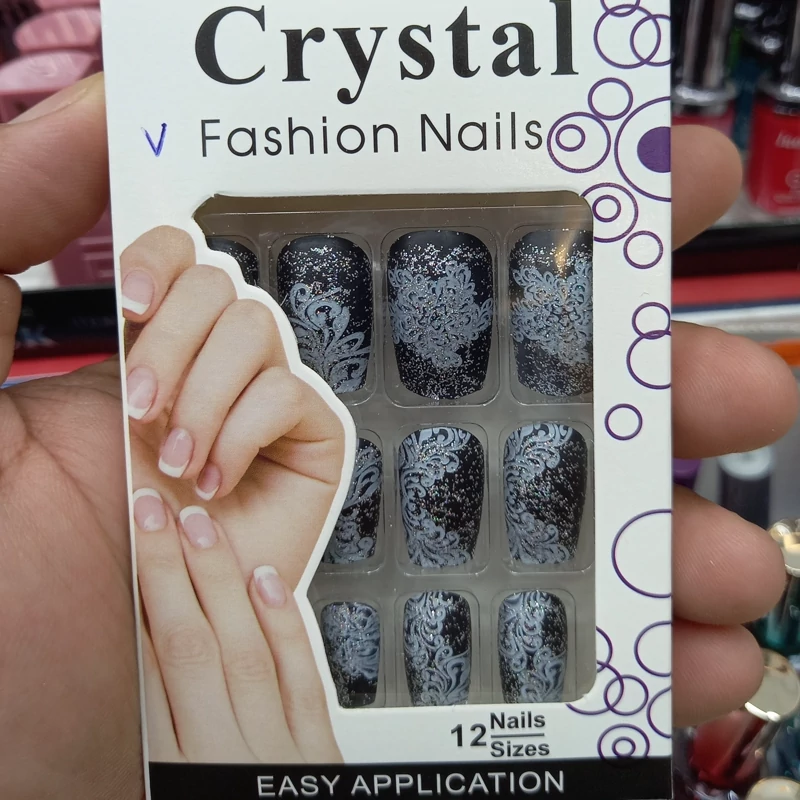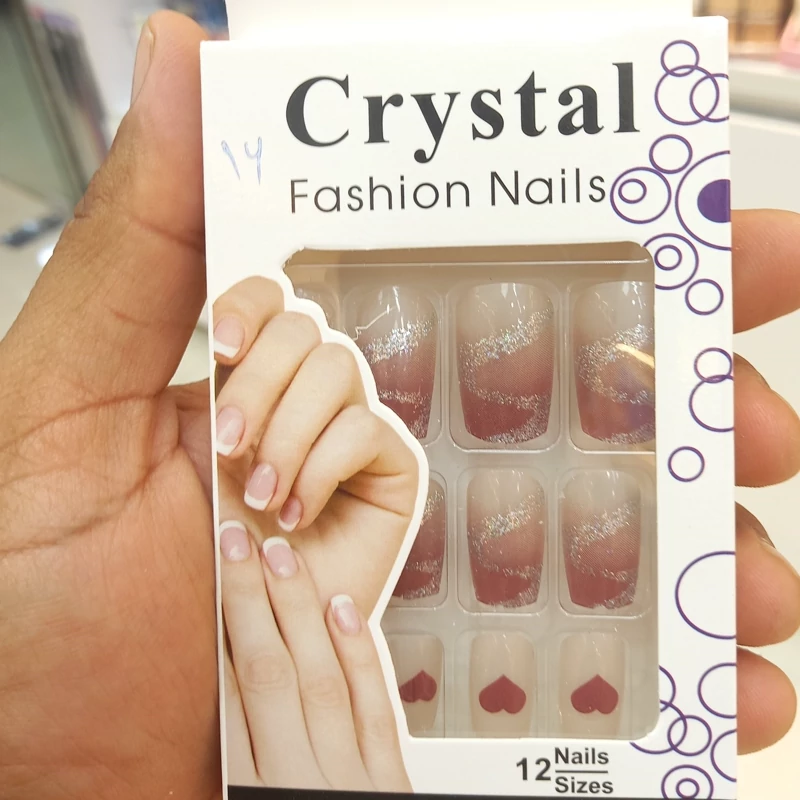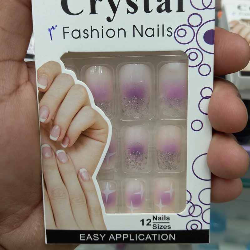 ناخن مصنوعی بزرگسال مدل کریستال 12 عددی با چسب دولبه