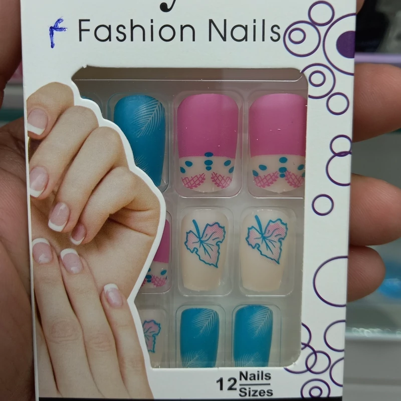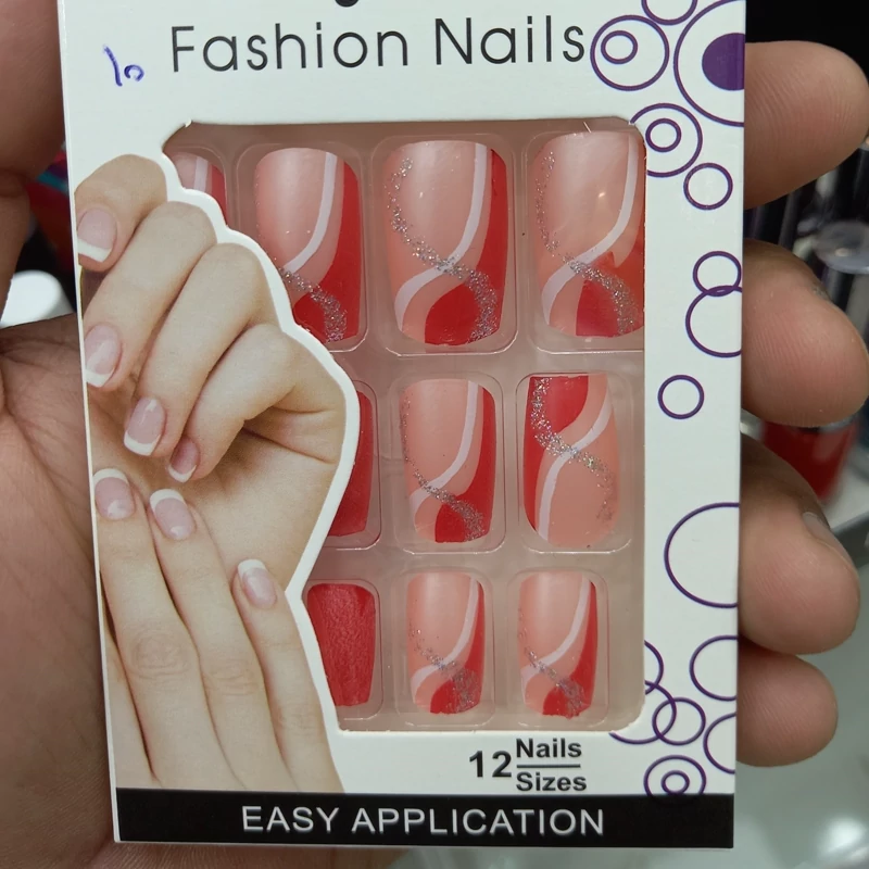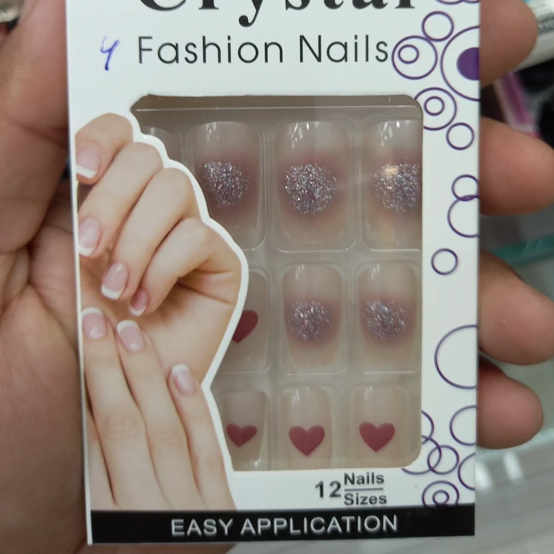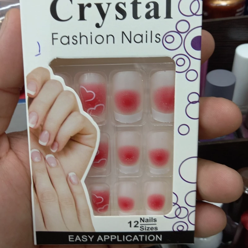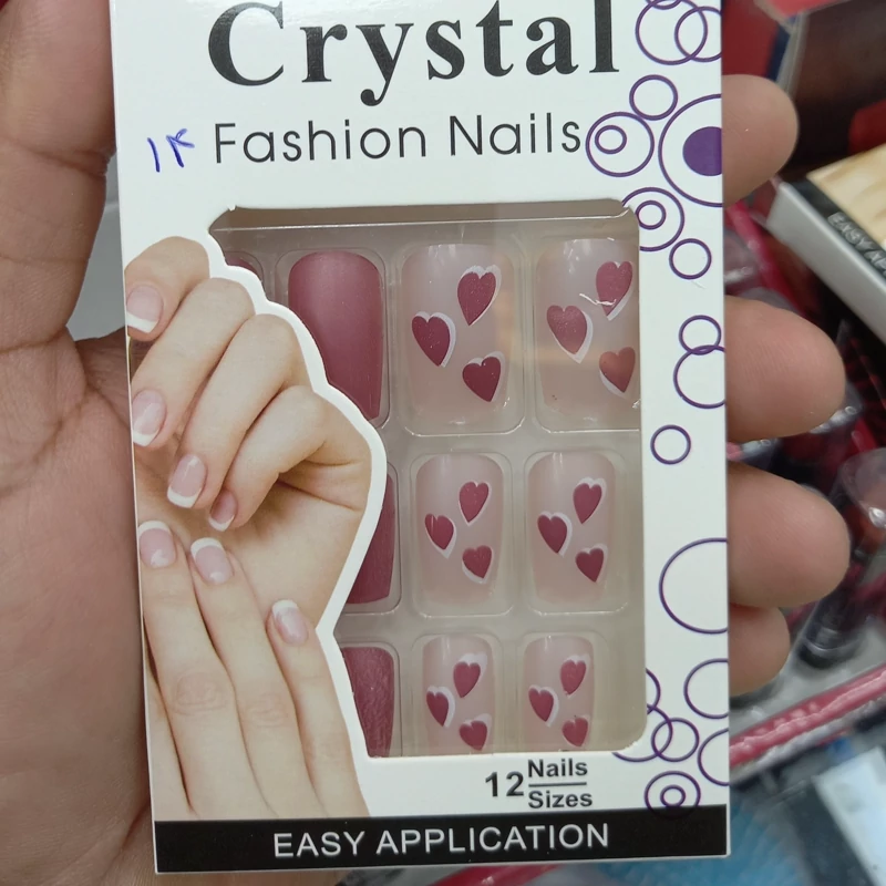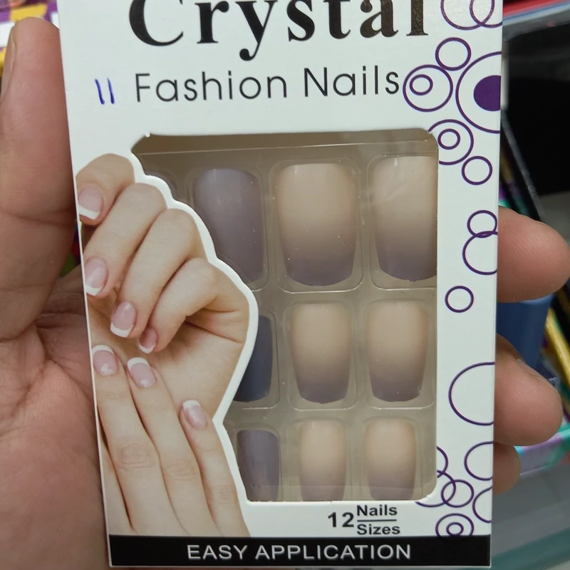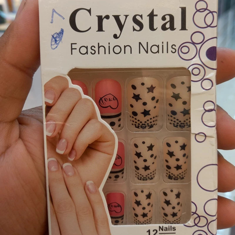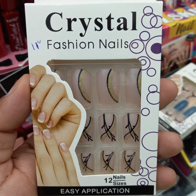 ناخن مصنوعی بزرگسال مدل کریستال 12 عددی با چسب دولبه